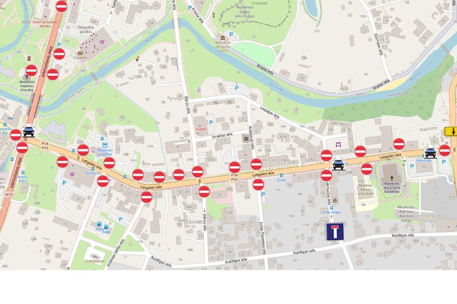 * 12:50–13:00 — закрыто движение по ул. Латгалес у Римско-католического собора Сердца Иисуса;