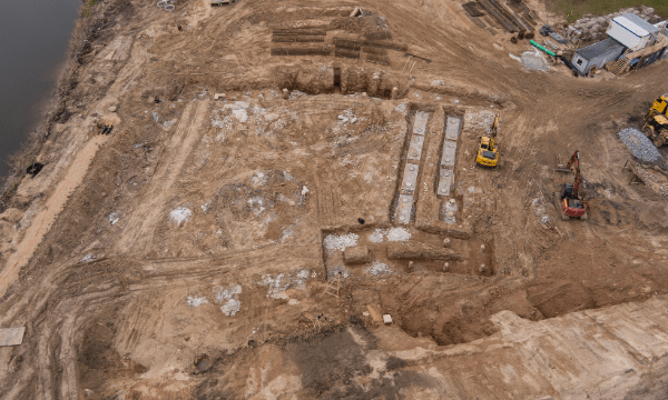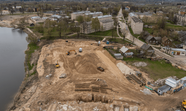 ФОТО: Стройка в Резекне около озера Ковшу.