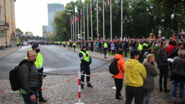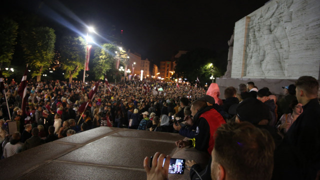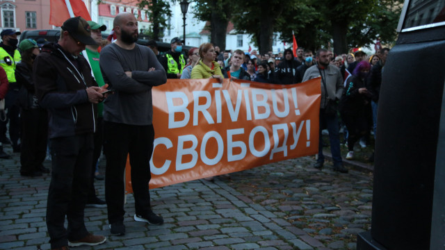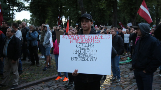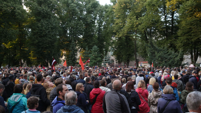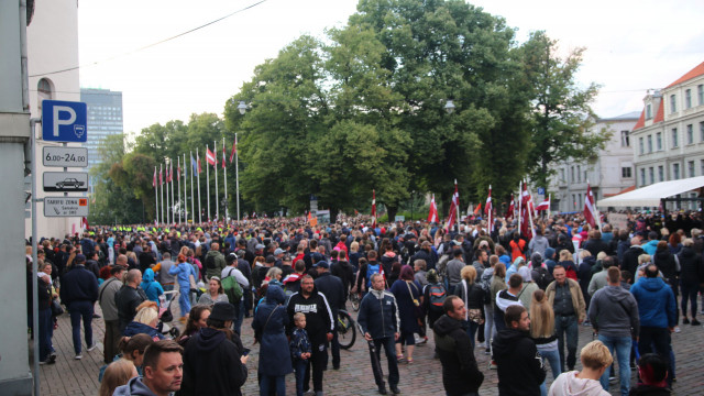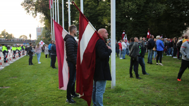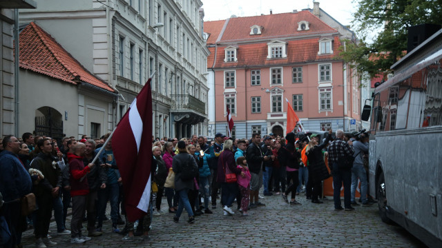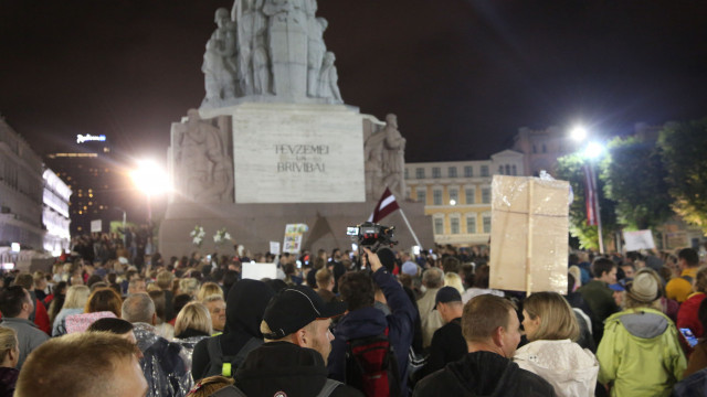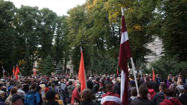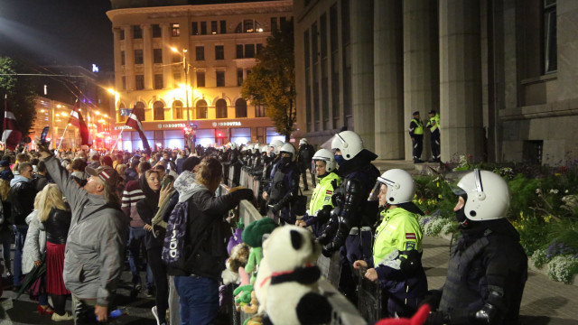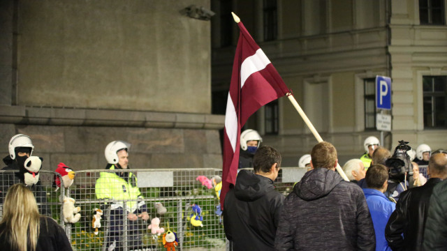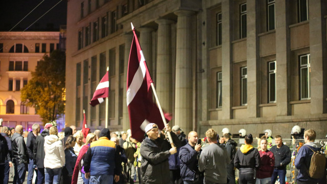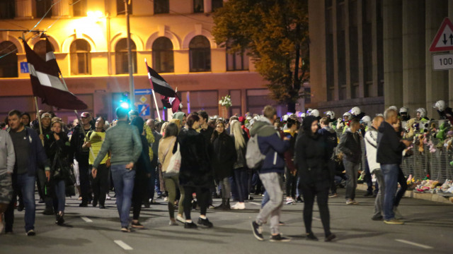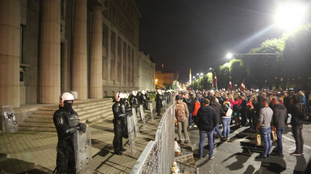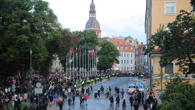 (ФОТО) Митинг в Риге. Провокации, разбитое стекло полицейской машины и многое другое.