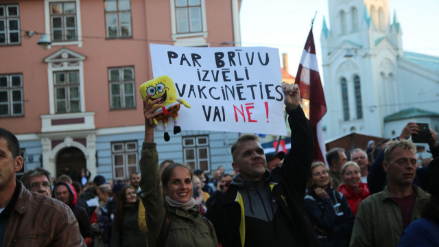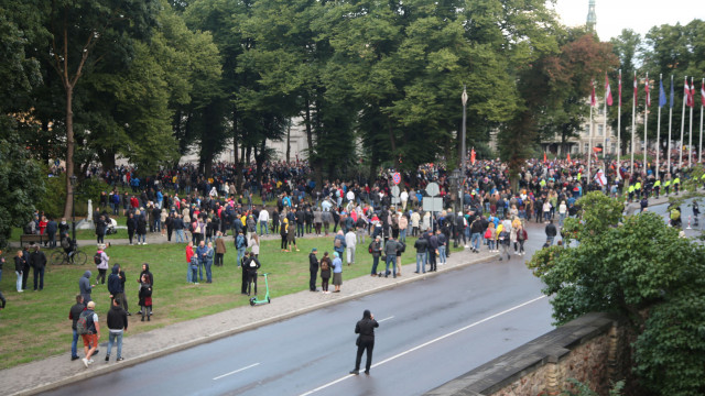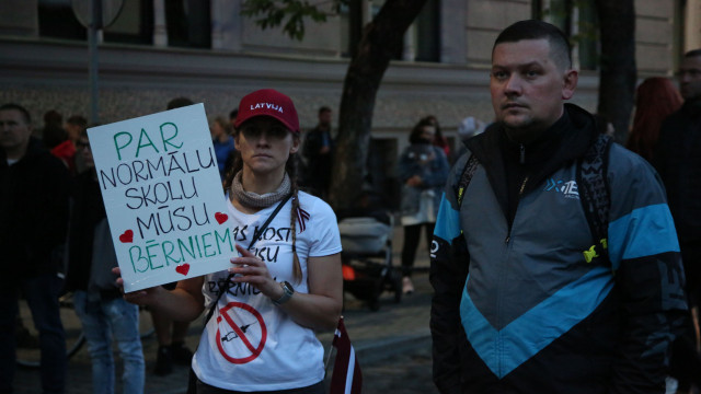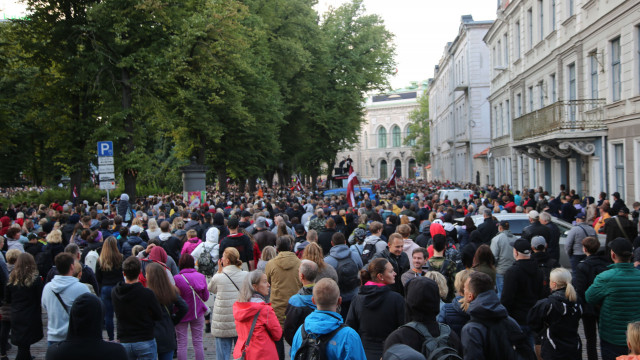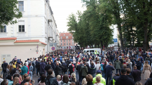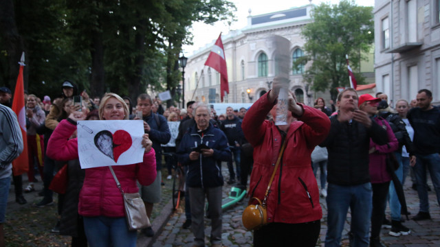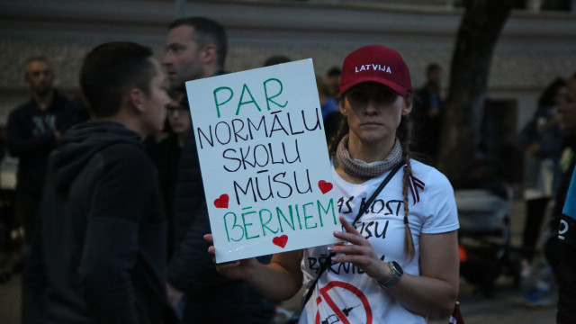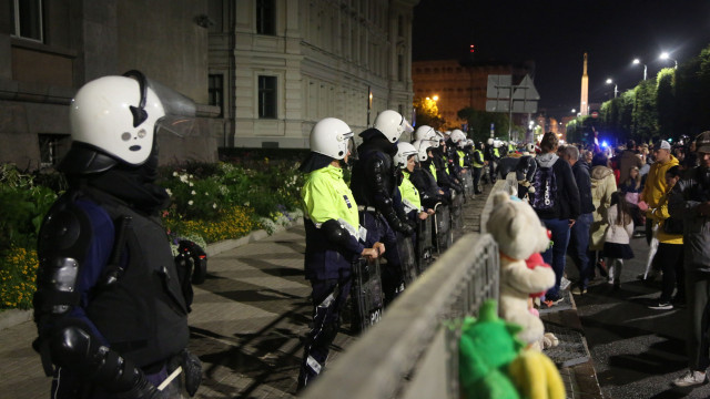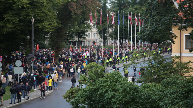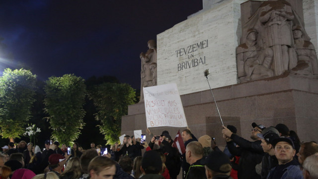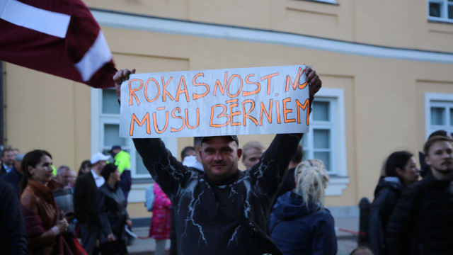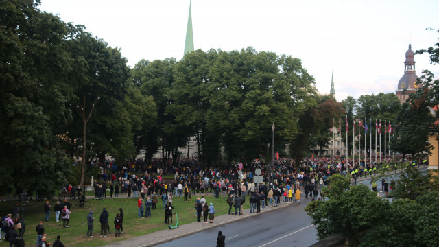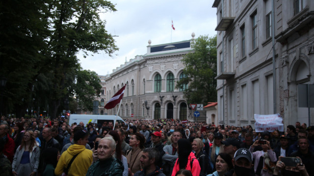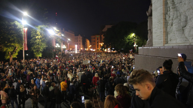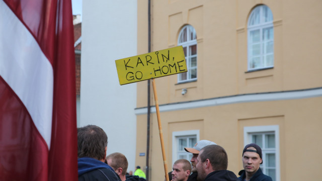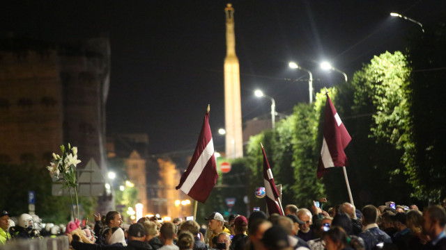 (ФОТО) Митинг в Риге. Провокации, разбитое стекло полицейской машины и многое другое.