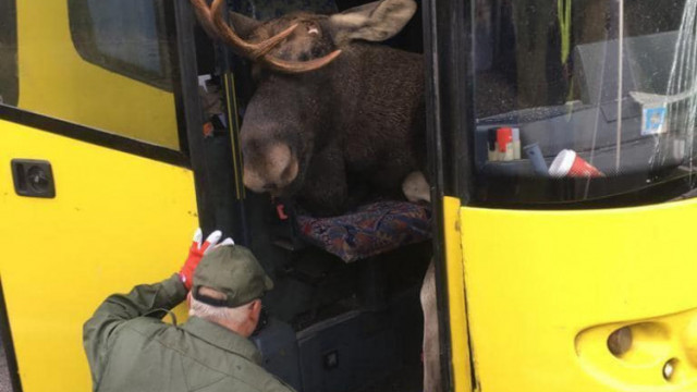 На Резекненском шоссе пассажирский автобус столкнулся с лосем.