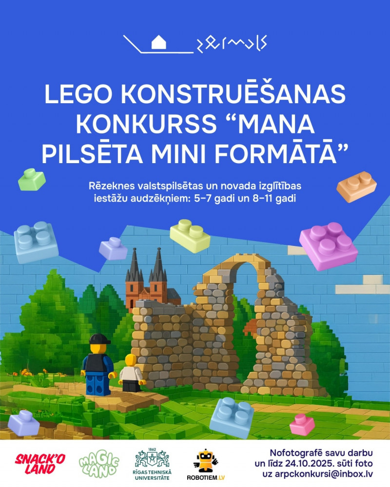 Мечтаешь о городе, где всегда солнечно, зелено и уютно? Теперь ты можешь создать его сам — из LEGO! В Резекне стартует творческий конкурс «Мой город в мини-формате», приглашающий юных строителей показать фантазию и воплотить мечты в ярких конструкциях из любимого конструктора.