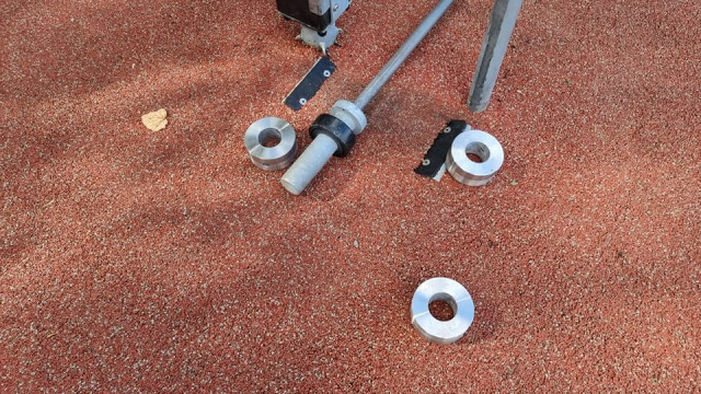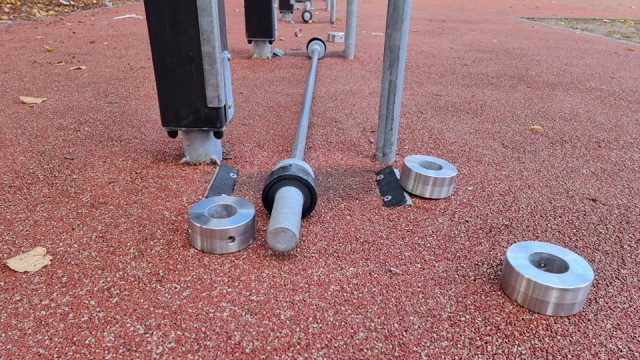 В парке Райниса неизвестные демонтировали и украли блины от штанг.